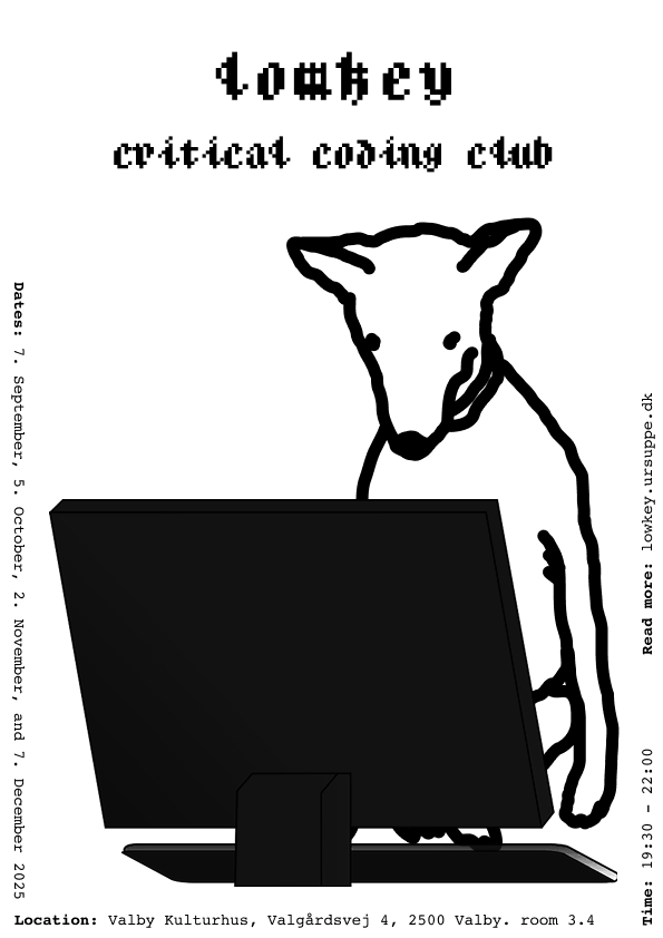 In lowkey we are focused on creating a space for diverse coding practices and building a community outside the usual institutions and sites with temporary contracts. E.g., academic institutions, businesses and entrepreneurship with ethical compromises, or "expert" meetups. Through the lens of critical technical practice, we are also open to address politics and social issues tied to coding, but rather than discussing them in the abstract, we focus on integrating this into our practice of coding.